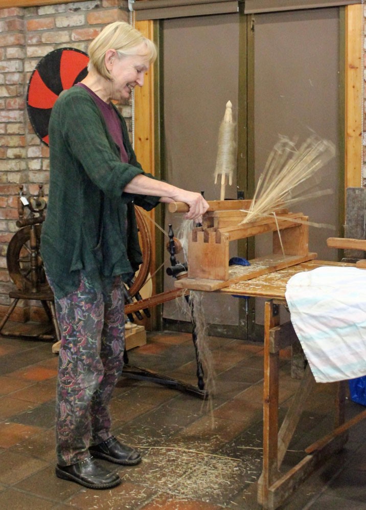 Given Riitta Sinkkonen Davies’s reputation as one of the UK’s foremost experts on the preparation and weaving of flax, this presentation was eagerly anticipated and it was noticeable that, despite competition from minor events further south, there was good turnout at Murton to hear it.