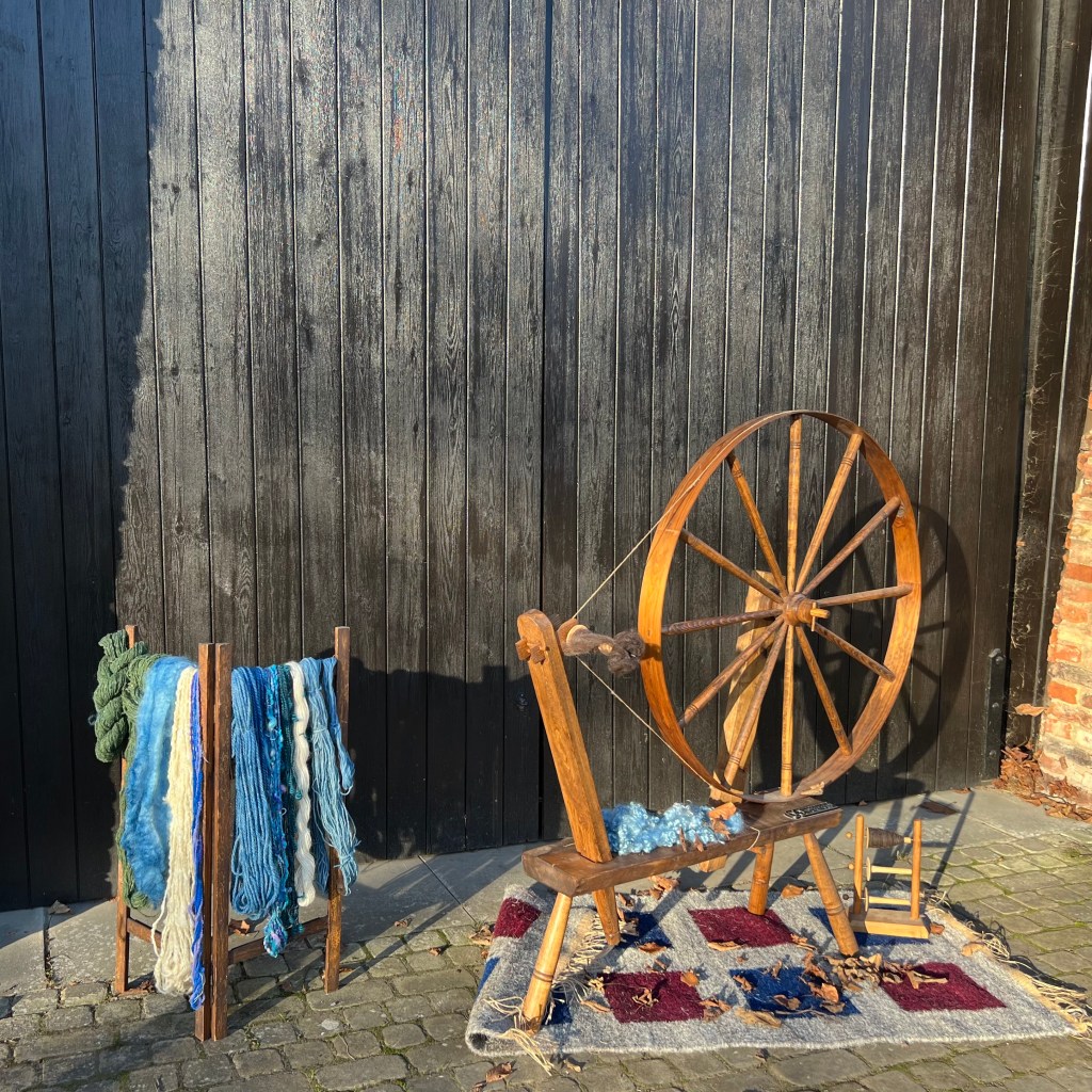 - displays charting the history of the three skills, from basic spindles to electric wheels, from stick weaving to complex looms, from dyeing with plants to precision dyeing with commercial dyes.