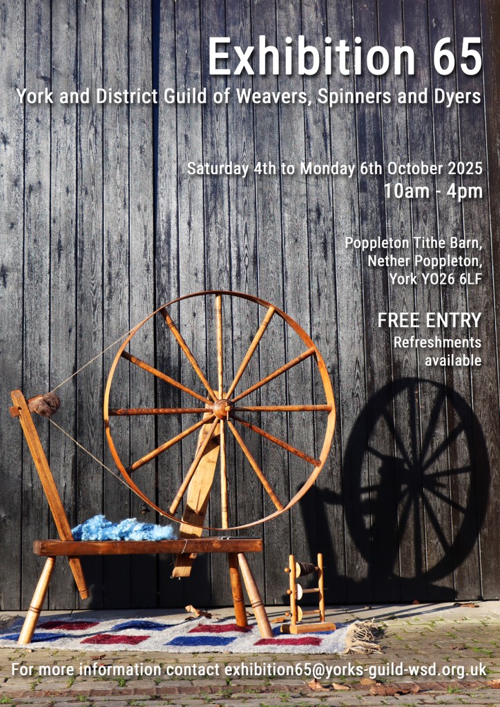 We are delighted to be holding our exhibition to celebrate the 65th anniversary of York and District Guild of Weavers, Spinners and Dyers at the Tithe Barn in Poppleton.